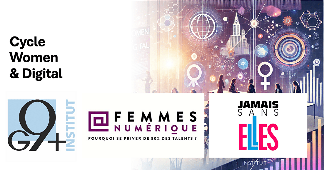 Le cycle Women & Digital de l’Institut G9+ a pour ambition de rassembler l’ensemble des acteurs de la filière numérique / digitale et d’organiser des débats de fonds sur les grands enjeux, tendances et thèmes d’actualité business, en favorisant la prise de parole et la part de voix des femmes, au sein de tables rondes féminines ou paritaires.